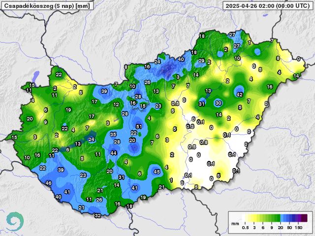A mögöttünk álló héten is igen változékony időben volt részünk. A hétfői napos, száraz időjárás után kedden még csak kevés helyen, majd szerdától egyre többfelé alakultak ki záporok, zivatarok, néhol felhőszakadások. A legtöbb helyen csütörtökön és pénteken esett, vasárnap pedig már országszerte száraz idő volt a jellemző. A Szeged –Jászberény – Biharkeresztes és az országhatárok általhatárolt területen sokfelé egyáltalán nem volt eső, de az északi országrészben és a Dunántúlon is vannak helyek, amik kimaradtak a csapadékból, vagy csak néhány millimétert kaptak. Ugyanakkor a délnyugati, a középső és az északi országrészben nagyobb területen hullott 20 mm-t meghaladó mennyiség, a felhőszakadások által érintett foltokban pedig 40-70 mm-t is mértek. Ezeken a tájakon átnedvesedett a talaj felső 30-60 cm-es rétege, a mélyebb talajréteg pedig eleve jó vízellátottságú volt. Az Alföld jelentős részén azonban tovább száradt a talaj, és a felső 20, néhol 30 cm-es réteg kritikusan száraz állapotba került, a friss vetésű nyári növényekre vonatkozóan ezeken a helyeken aszály tapasztalható. Az Alföld délkeleti tájain az áprilisi csapadékösszeg 10 mm alatt alakul, ami negyede-ötöde az ilyenkor szokásos mennyiségnek.