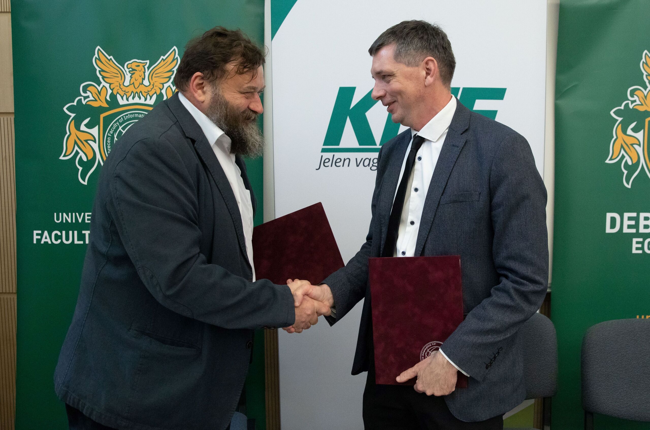 A megnyitó további részében az együttműködési megállapodások ünnepélyes aláírására került sor. Elsőként a ACPM IT Zrt. képviseletében Erdei Csaba ügyvezető, majd a KITE Zrt. részéről Hadászi László innovációs főigazgató írta alá a díszkötésű szerződést. Hadászi László köszöntőjében elmondta, hogy a KITE Zrt. és az egyetem Mezőgazdaság-, Élelmiszertudományi és Környezetgazdálkodási Karának kapcsolata immár 50 éves múltra tekint vissza, most viszont új lehetőségként üdvözölték az Informatikai Karral történő együttműködésre.