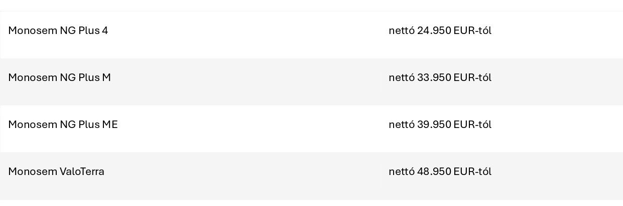A legújabb fejlesztésű Monosem vetőelem, 980 literes – szilárd műtrágya kijuttatására alkalmas – központi tartállyal szerelt vetőgép. A ValoTerra vetőelemben a korábbi fejlesztésű NG Plus és NX vetőelemek által szerezett tapasztalatokat ötvözték. A vákuumos rendszerű adagolóelem továbbra is alumíniumból készül, a vetőtárcsa mérete kisebb lett, de cserébe vastagabb. 2025-től elérhető a kefés maglehordóval rendelhető ValoTerra Ultimate, amennyiben valaki az ejtőcsöves technikát leváltaná. A vetőelem robusztus felépítésű, a piacon egyedülálló 450 mm átmérőjű nyitócsoroszlyák és a 200-325 kg csoroszlyanyomás lehetővé teszik a nagy sebességű, 4-16 km/h vetést, emellett – opcióban csipkés – tömörítőkerekek biztosítják a magárok zárását. Hagyományos forgatás nélküli talajművelési rendszerekbe és direkt vetés esetén is használható. A granulátumadagoló is új helyre került, a 70 literes vetőmagtartály mögött kapott helyett, mintegy 20 literes térfogattal, szintén soronként elektromotorral szerelve, épp úgy, mint a vetőelem vagy a szilárdműtrágya-kijuttató. Összességében egy egyszerű, jól megszokott, felhasználóbarát, Monosem szabadalmakkal ellátott gépről beszélhetünk.