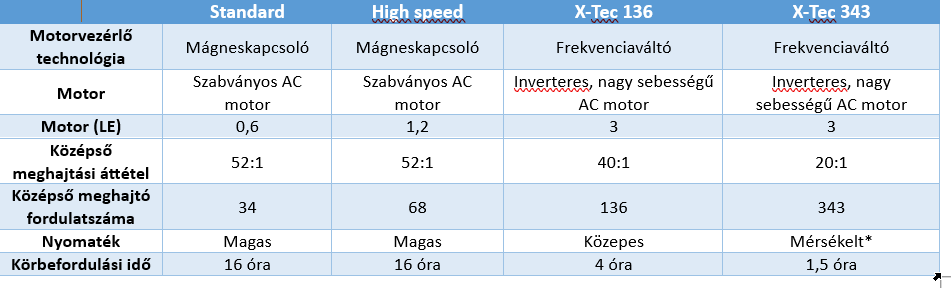 - Frekvenciaváltó által vezérelt, ami csökkenti a meghajtás indítási terhelését, és megnöveli az alkatrészek élettartamát.