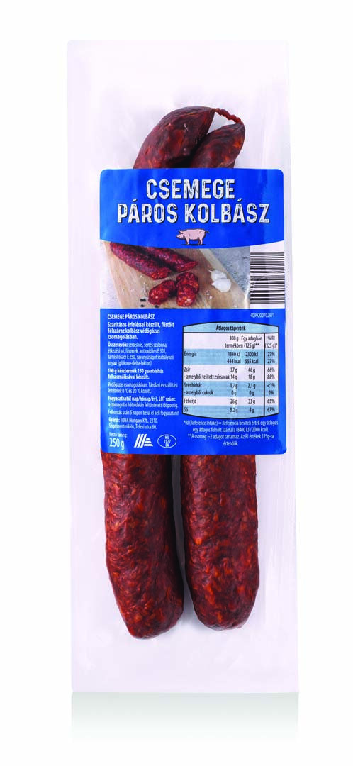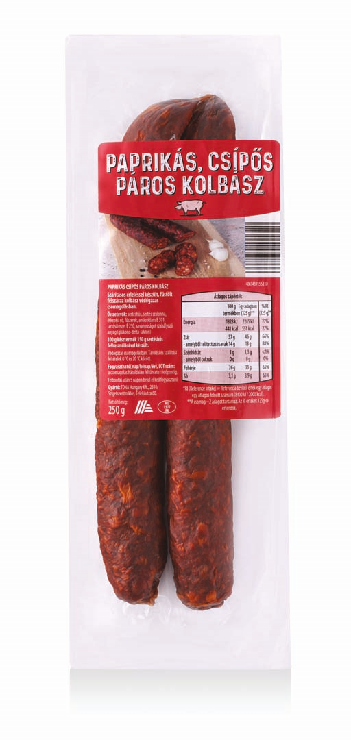 - Termékek megnevezése: Csemege páros kolbász, 250 g és Paprikás, csípős páros kolbász, 250 g