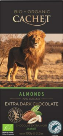 - Megnevezés: Cachet Almonds 72% Cacao Extra dark chocolate, 100 g/ Mandulás étcsokoládé 72% kakaóval, 100 g