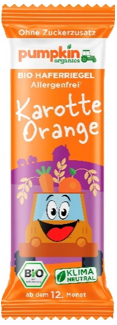 - Termék megnevezése: Pumpkin Organics bio zabszelet sárgarépa-narancs ízű, 20 g
